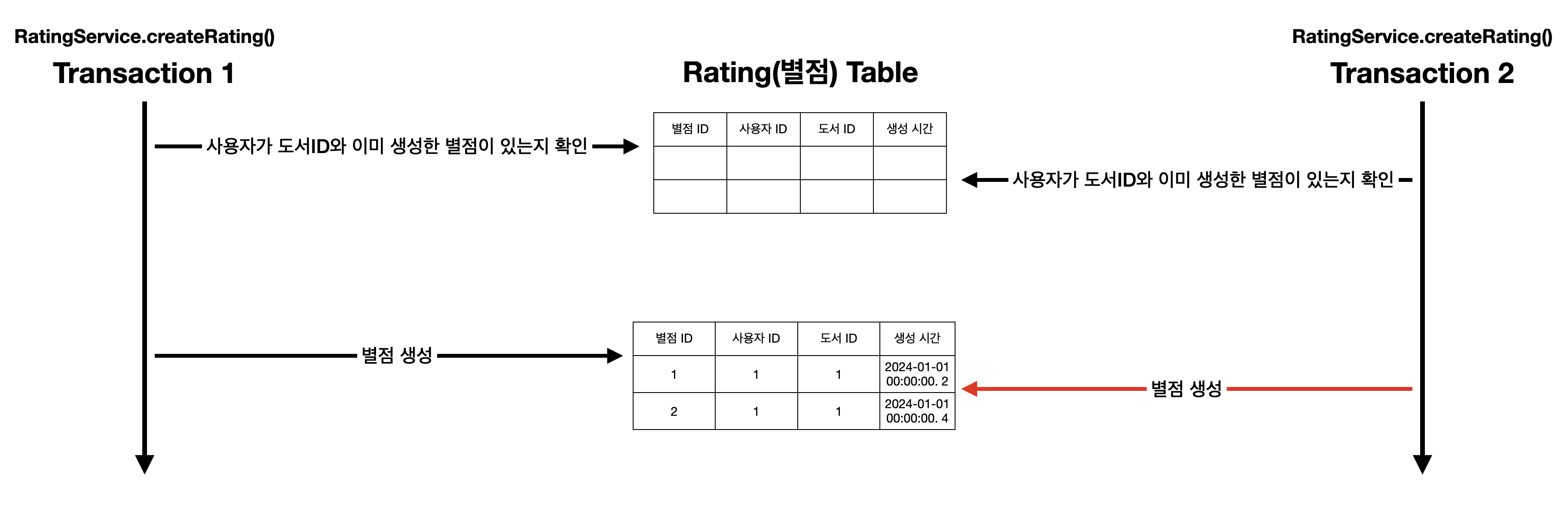 ์ ์ฌ์ง์ฒ๋ผ ํ ์ฌ์ฉ์๊ฐ ๋ณ์ ์ ์ ์ถํ ๋ ๋น ๋ฅด๊ฒ ์์ฒญํ์ฌ 2๋ฒ ์์ฑ๋๋๋ก ์๋ํ ๊ฒฝ์ฐ, ๋ ์์ฒญ์ด ๊ฑฐ์ ๋์์ ๋ฐ์ดํฐ ๋ฒ ์ด์ค์ ๋๋ฌํ๊ฒ ๋๋ฉด์ ๋ณ์ ์ด ์๋์ง ํ์ธํ๋ ๋ก์ง์์ ๊ฒ์ฆ๋์ง ์๊ณ ์ค๋ณต ๋ฐ์ดํฐ๊ฐ ์ ์ฅ๋ ๊ฐ๋ฅ์ฑ์ด ์๊น๋๋ค.