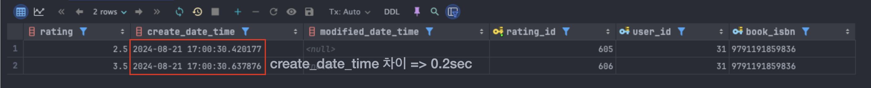 // ์กฐํํ user์ book์ ํตํด์ rating์ ์ค๋ณต ์์ฑํ๋์ง ํ์ธํ๋ค.